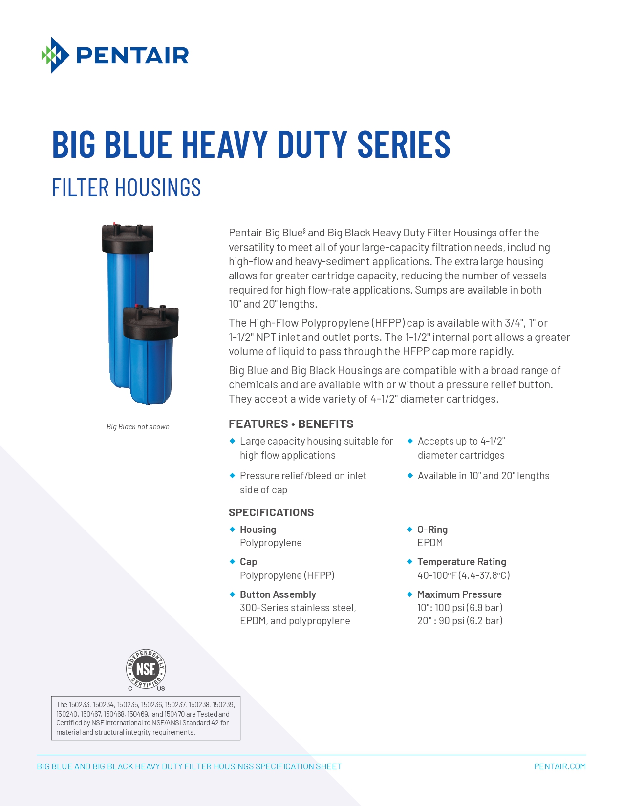 Pentair Big Blue® ヘビーデューティーフィルターハウジング