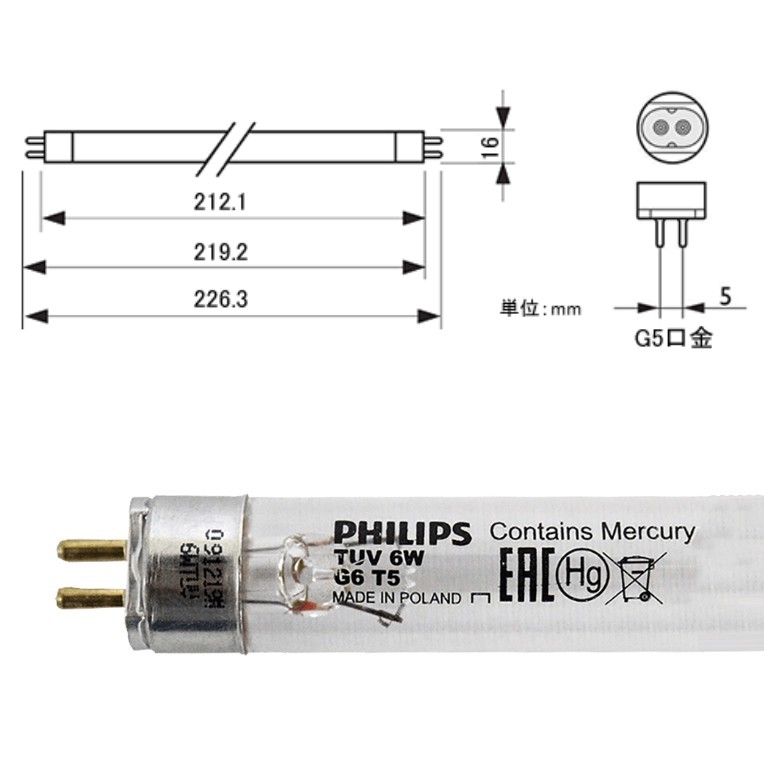 | 口金 / 全長 | G5 / 212.1mm (管径16mm) |